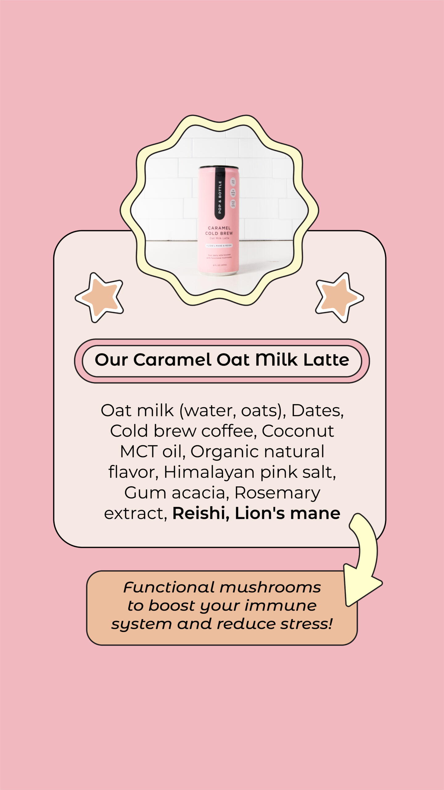 Pop & Bottle Caramel Oat Milk Latte with Lion’s Mane and Reishi, Organic, 8 fl oz